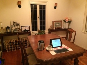 6:30a.m. – pouring rain in La Mesa and I happened to drive an old Mercedes home which had the hood removed for repairs. Since ignition systems and water don’t do well together I’ll do a morning at the Villa Zee Zaw (the antique house were I reside)