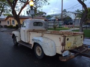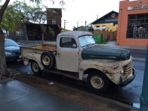 This morning I’m at Rebecca’s Coffee House in South Park. I drove my 1950 Ford F2 which needs exercise every few weeks. It is a barn-find type truck in its “natural state”. ‘Natural state’ after sixty plus years means, ‘paint falling off’. I have however attended to all of its running gear which remains ‘correct’, ‘stock’, or as original. In other words she is still running her flat head straight six engine and crash-box 4-speed with a ‘granny first’.