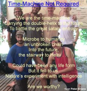 I met some wonderful people at LPAC. The scientists, explorers & photographers above represent ‘humanity’ in my extropian poem of DNA as a time-traveler. The background for the other original poem is a small fruiting-body we photographed for the fungi catalog.