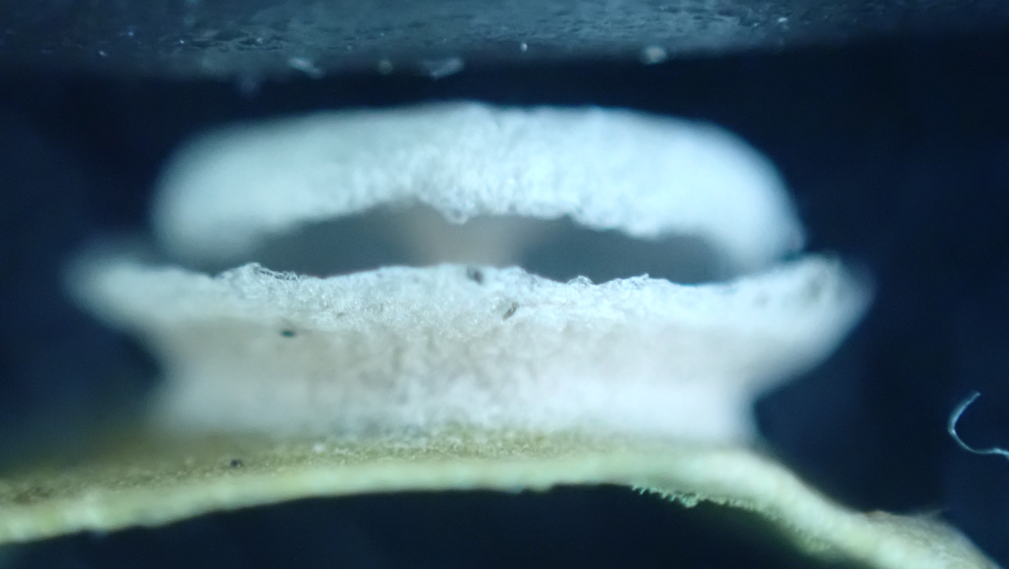 Aunque dos de los sombreros presentaban ligeras diferencias de coloración —uno con un disco central marrón más marcado y otro de apariencia general más pálida— las características estructurales fueron consistentes entre los ejemplares. Estas diferencias se explican mejor como variaciones normales debidas a la edad, la humedad y la exposición, y no como indicativas de especies distintas.