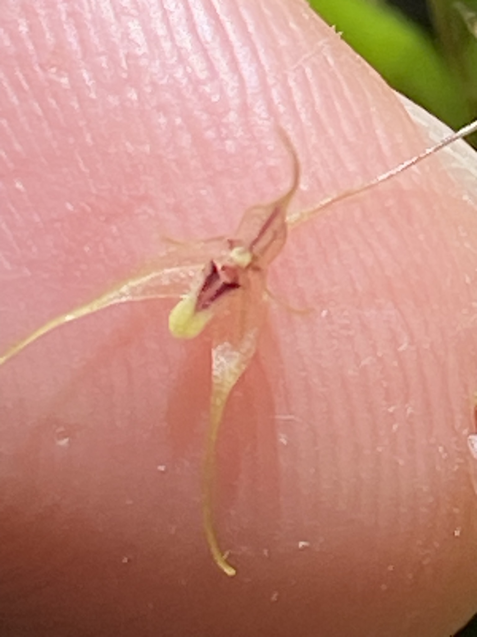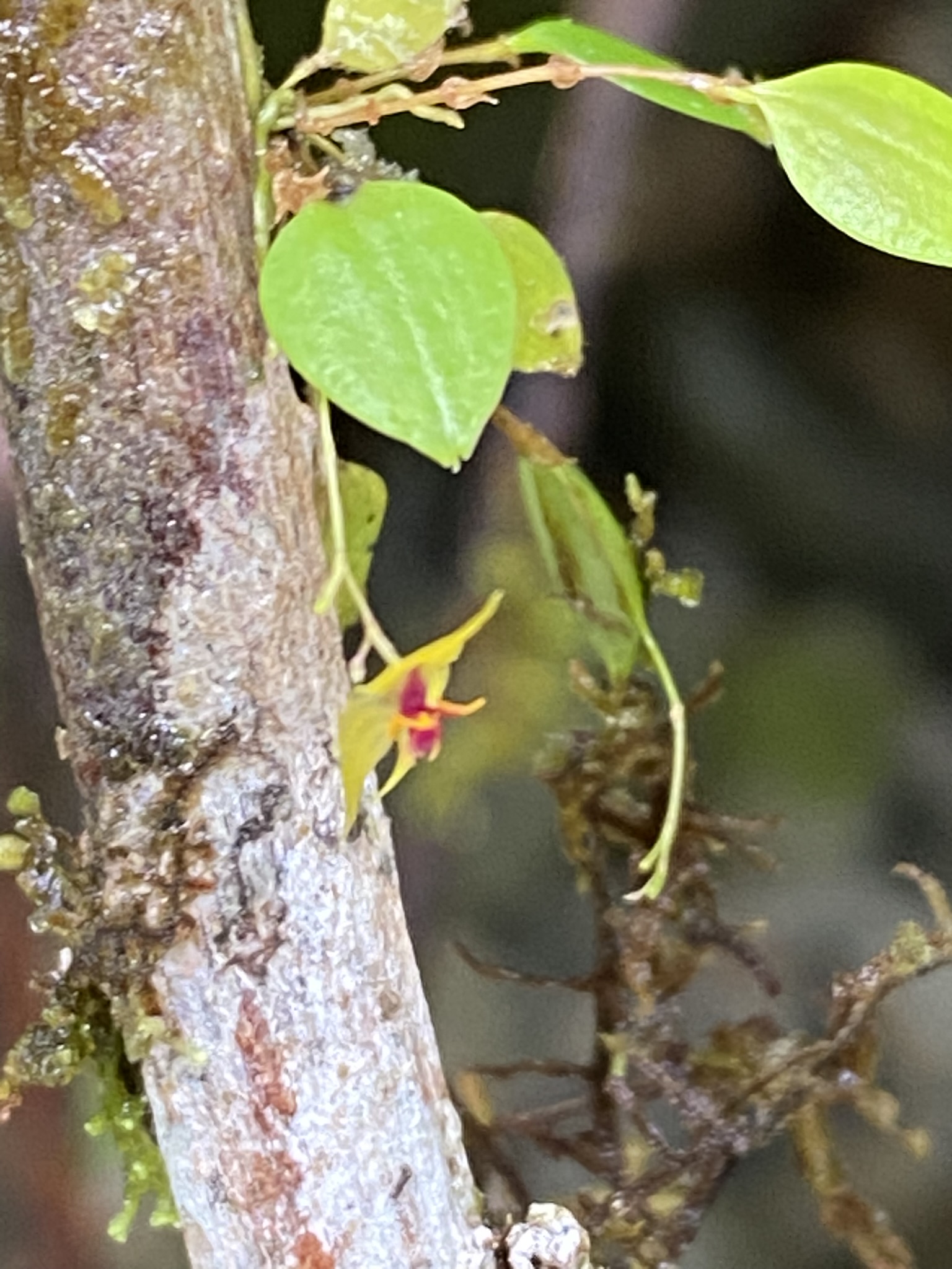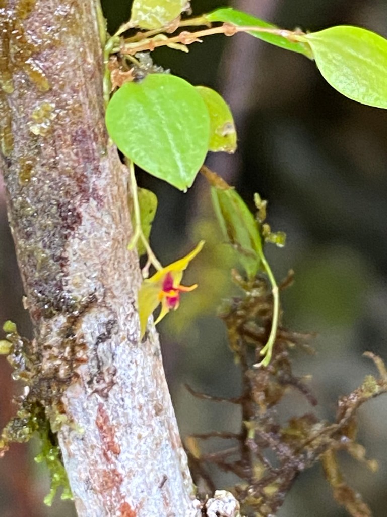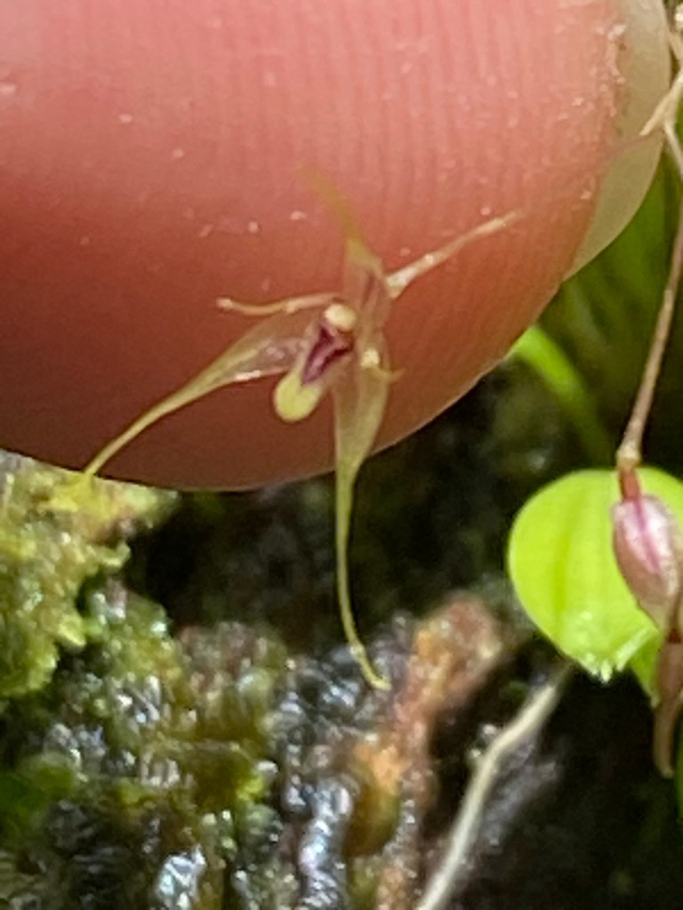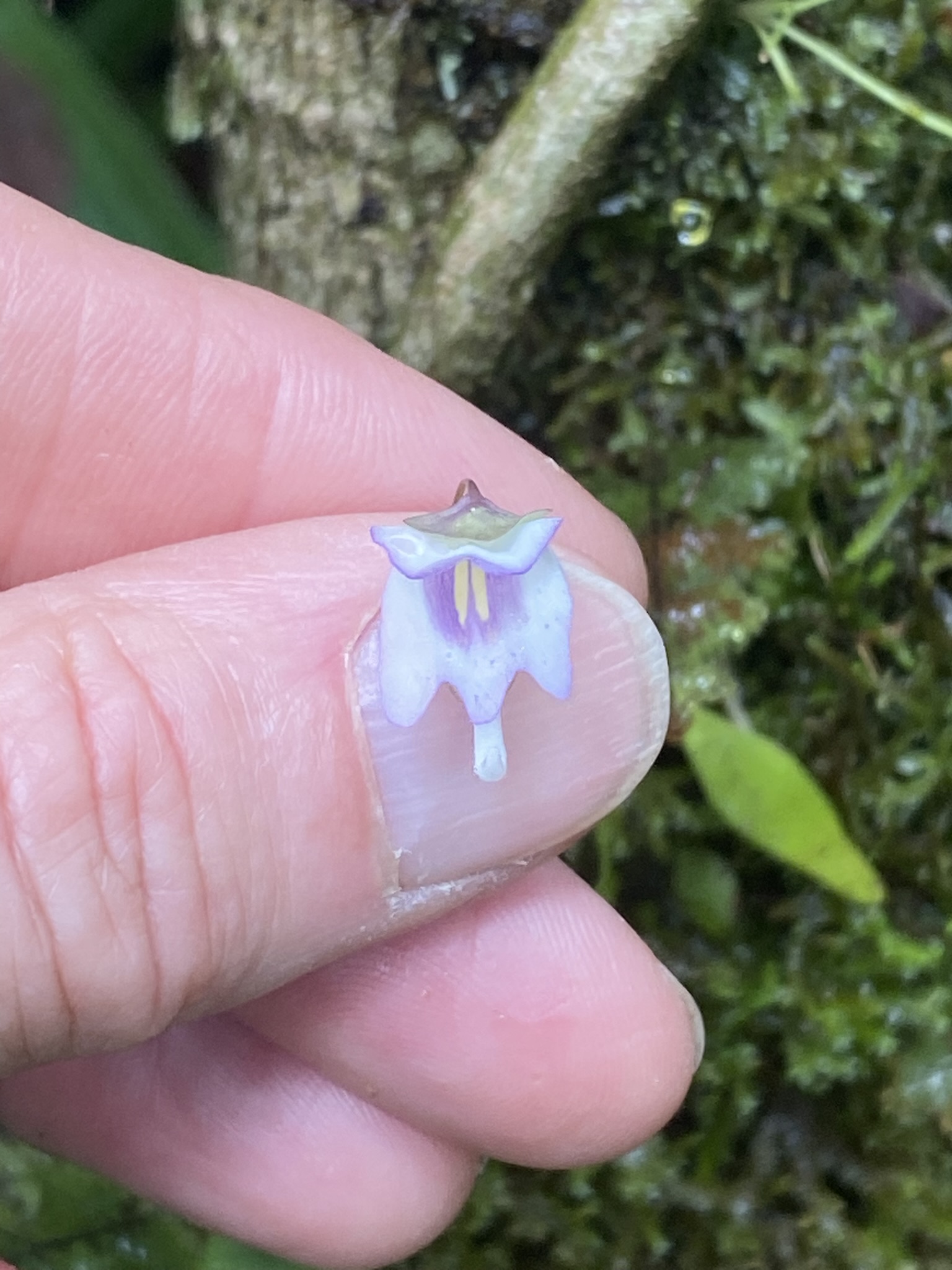 Por su forma y su hábitat en el bosque nuboso de Soqtapata, este ejemplar probablemente sea Utricularia jamesoniana, una utricularia epífita que suele crecer en troncos de árboles cubiertos de musgo en las estribaciones amazónicas y andinas.