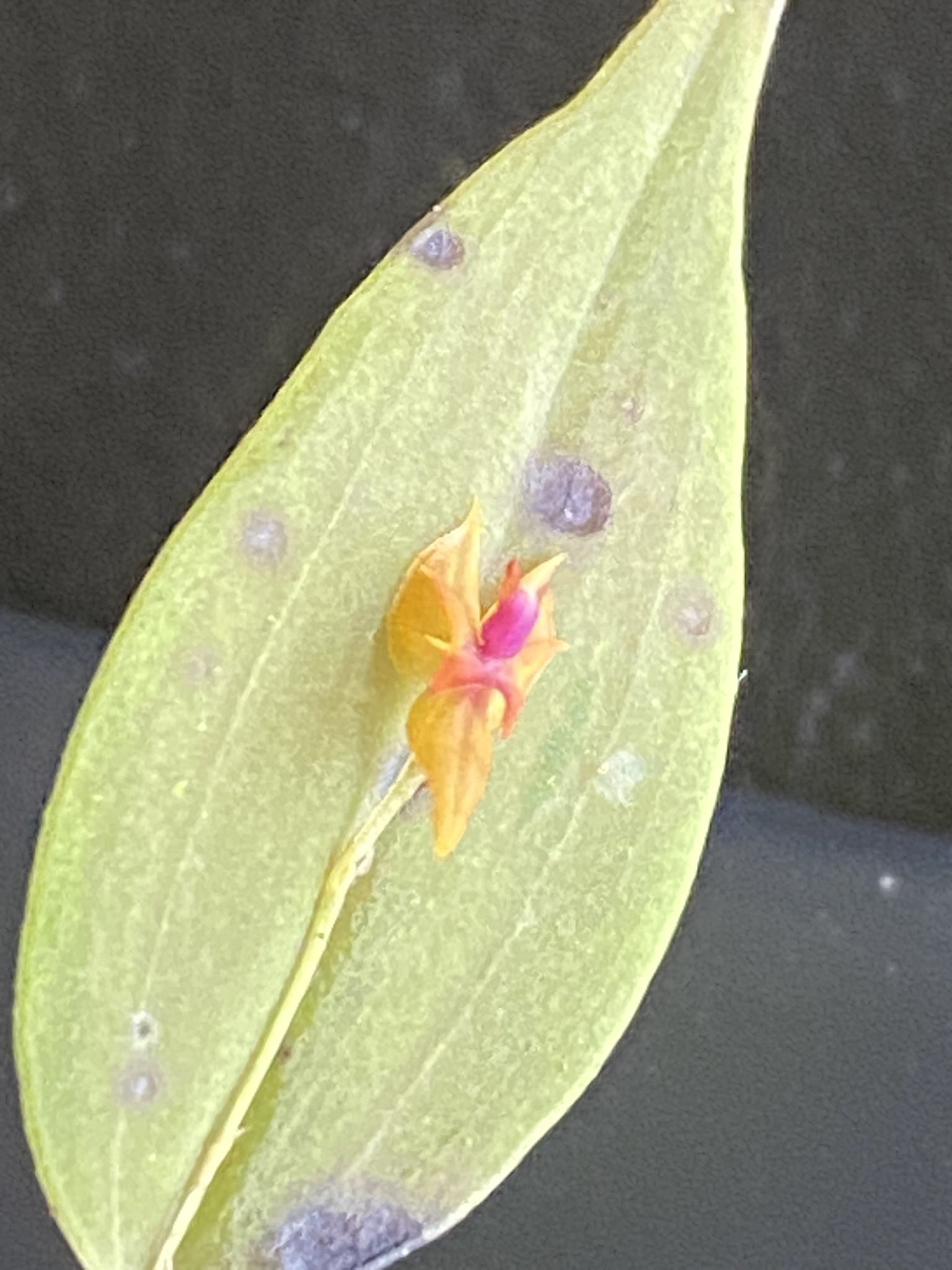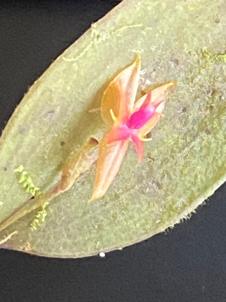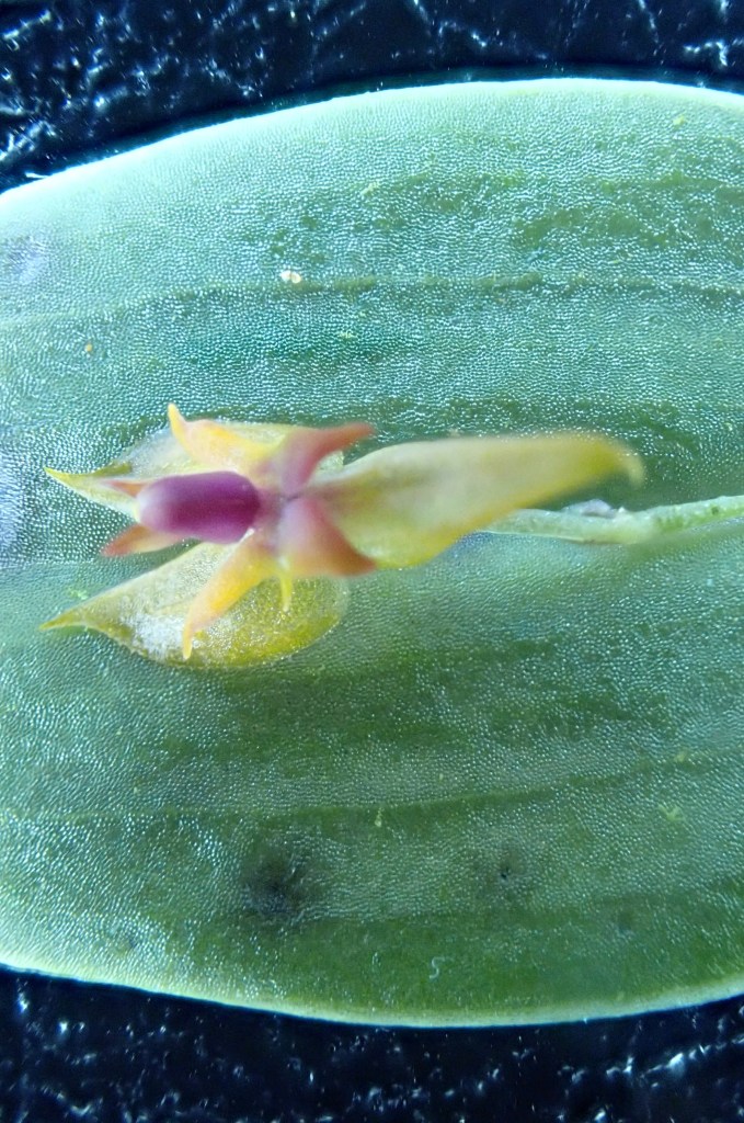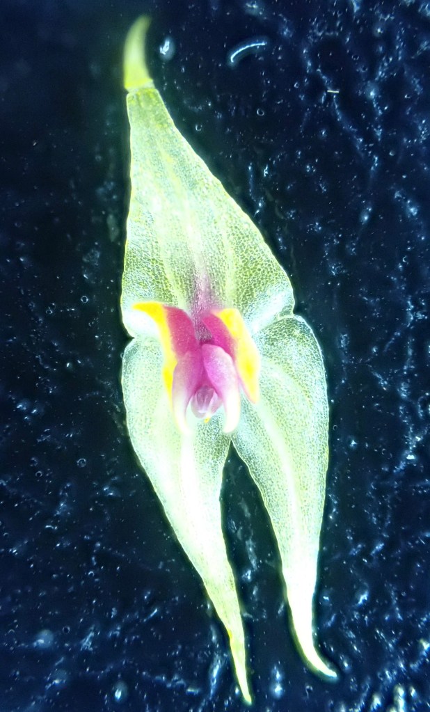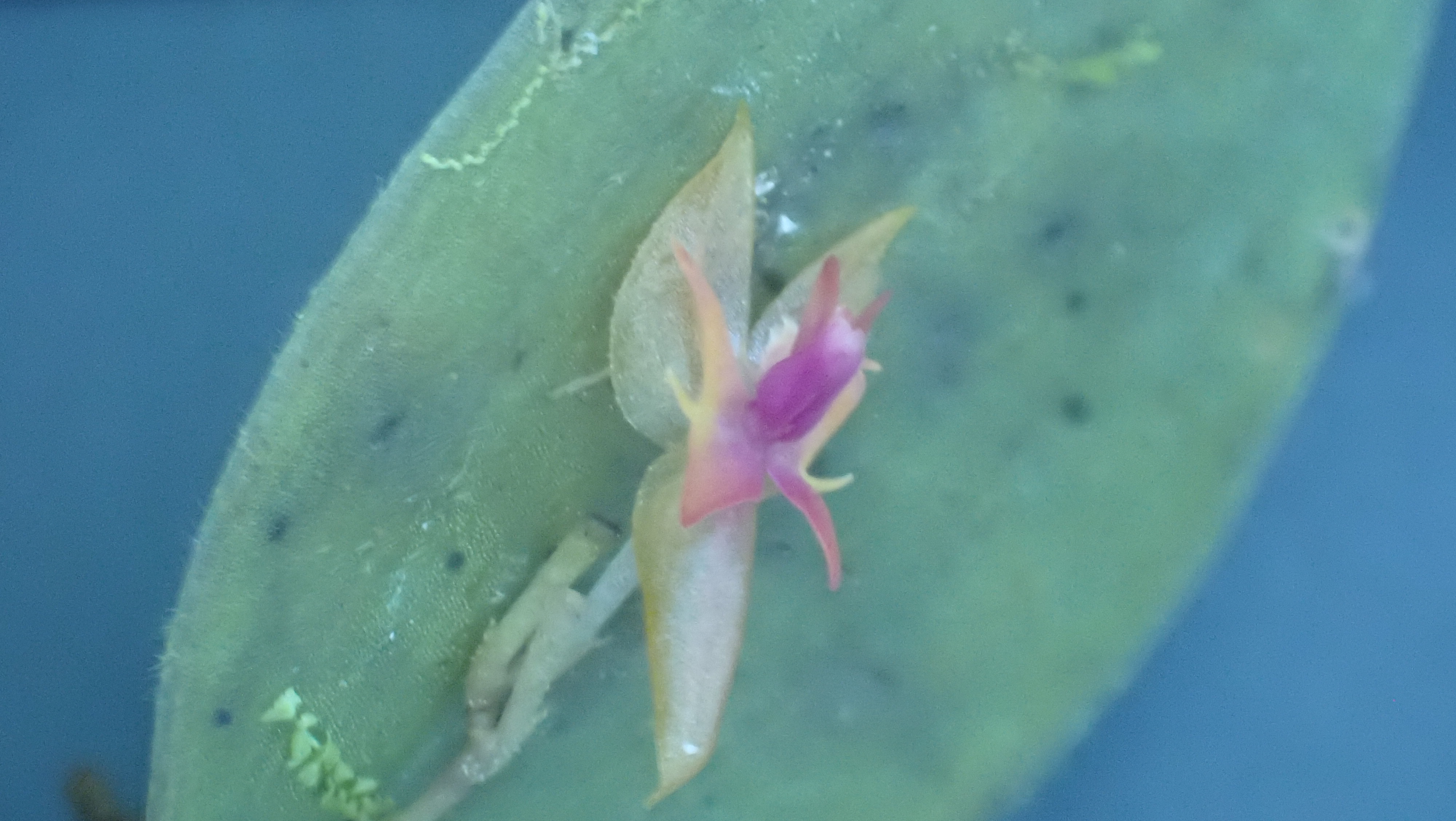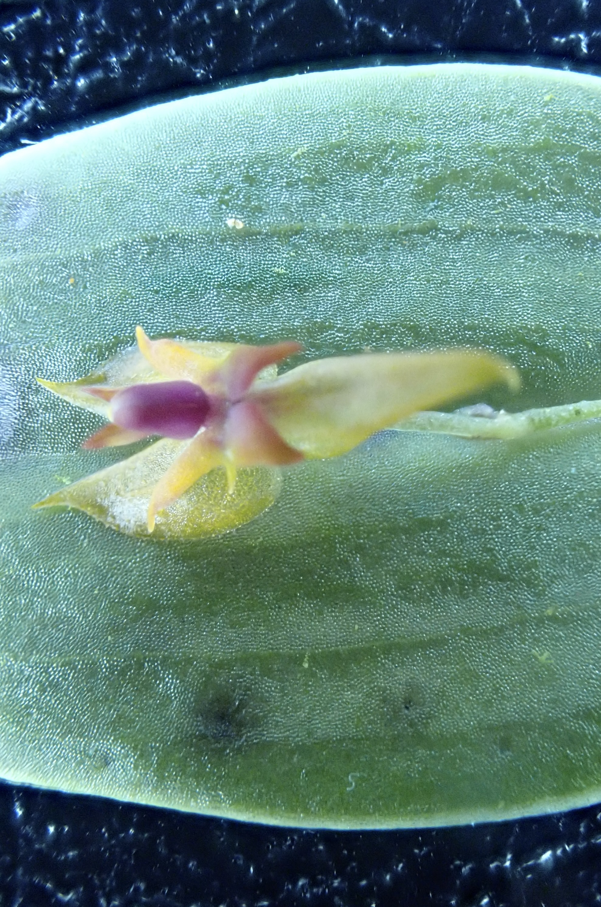 Por su forma y su hábitat en el bosque nuboso de Soqtapata, este ejemplar probablemente sea Utricularia jamesoniana, una utricularia epífita que suele crecer en troncos de árboles cubiertos de musgo en las estribaciones amazónicas y andinas.