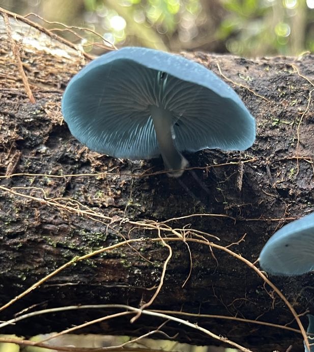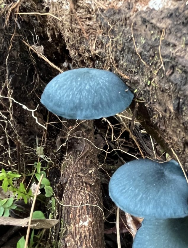 Un compañero de Soqtapata encontró estos llamativos hongos azul intenso creciendo en un tronco en descomposición, en pleno bosque nuboso. Las especies azules de Mycena en los Andes son sorprendentemente bellas, pero siguen siendo poco estudiadas; en estos hábitats húmedos y sombreados probablemente existen varias especies aún no descritas.