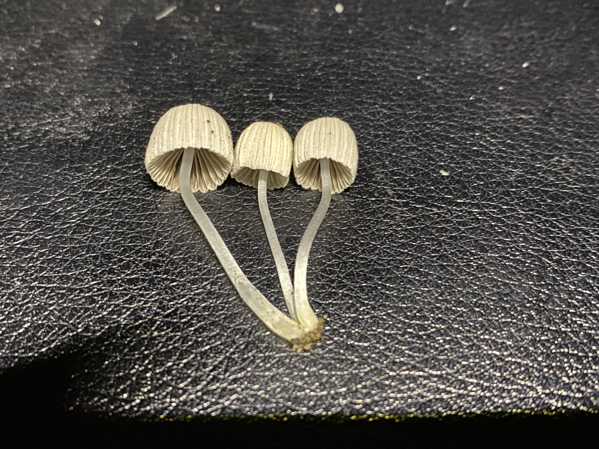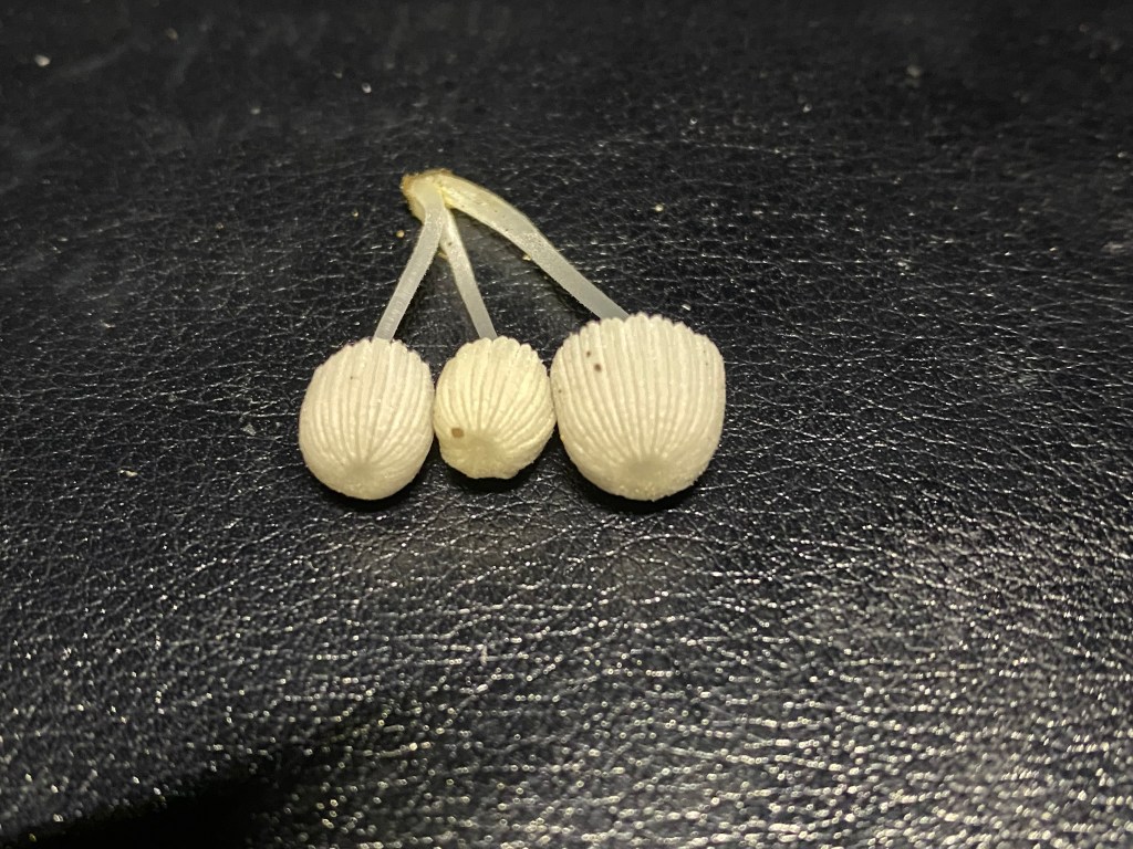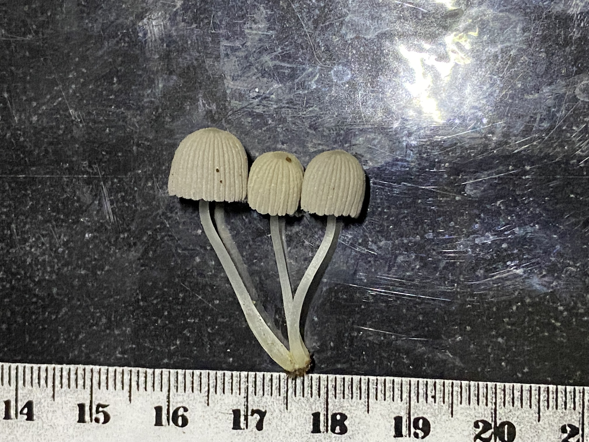 Although two of the caps showed slight differences in coloration—one with a more pronounced brownish central disc and the other appearing paler overall—the structural features were consistent across specimens. These differences are best explained by normal variation due to age, moisture, and exposure rather than indicating different species.