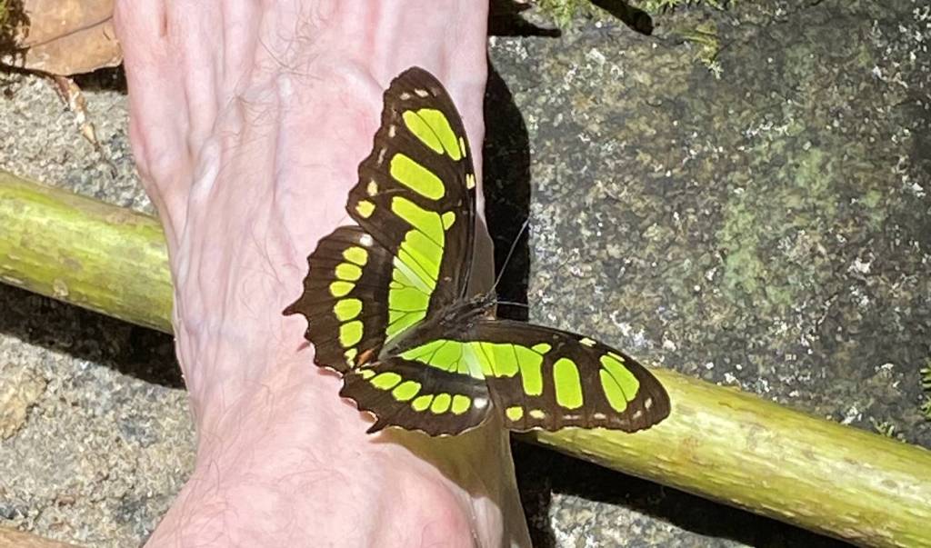 Observados en días distintos y en diferentes sectores del bosque, estos ejemplares corresponden a una misma especie, Siproeta stelenes, conocida como “malachite”. Sus llamativos tonos verdes, dispuestos sobre un fondo oscuro, generan un patrón que resulta a la vez orgánico y definido, evocando las formas del follaje circundante mientras destaca con notable claridad. Las alas son anchas, con bordes ligeramente ondulados y una pequeña prolongación en las alas posteriores, lo que le confiere una silueta más robusta que la de muchas especies afines.